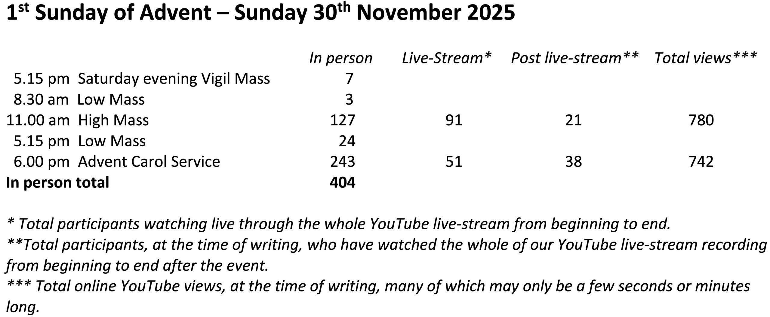 Attendance last Sunday